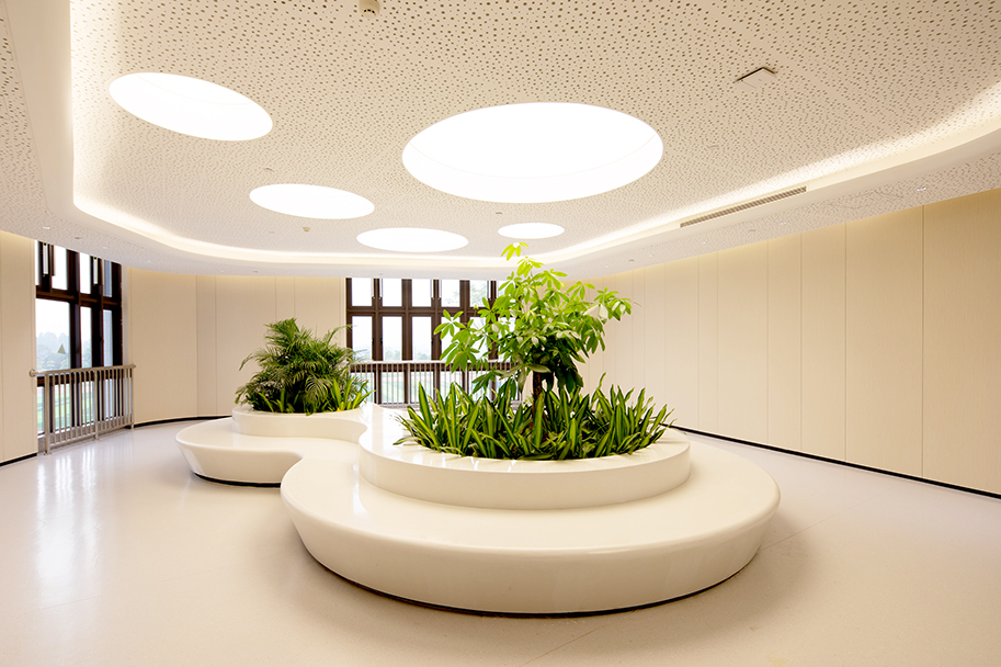 ▲ 室內墻面大范圍使用環(huán)保工藝及材質(zhì)。